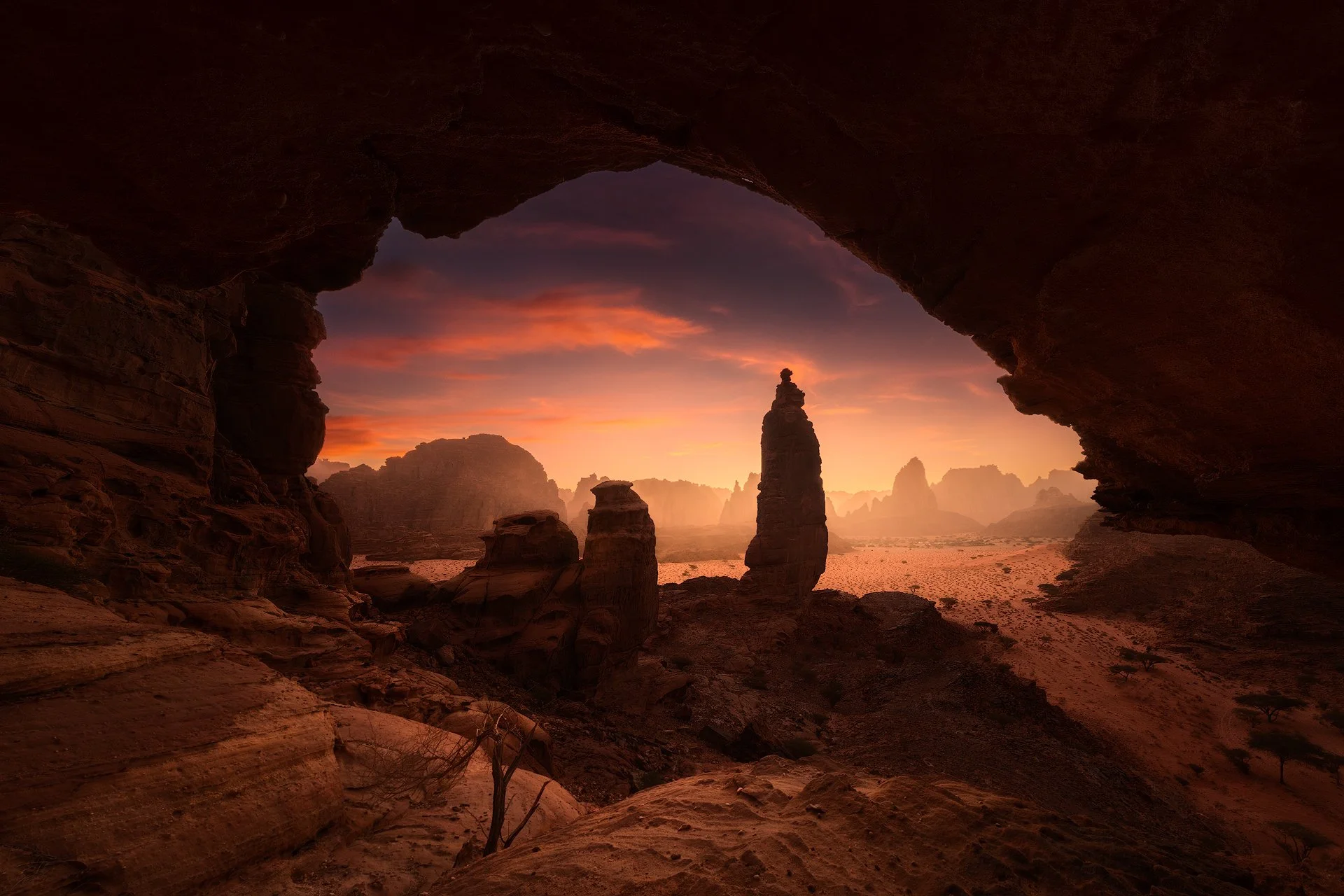 For sunset, we’ll head to a similar area and try to find small accessible caves, from which we’ll photograph the valley bathed in the evening light.